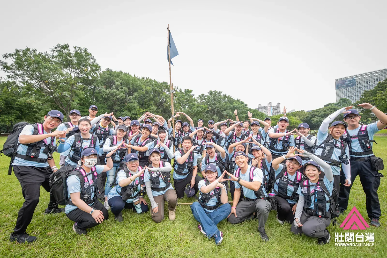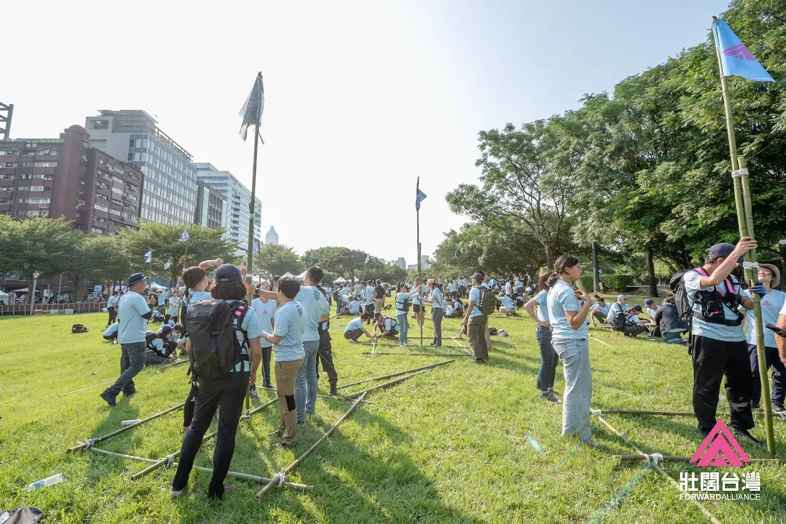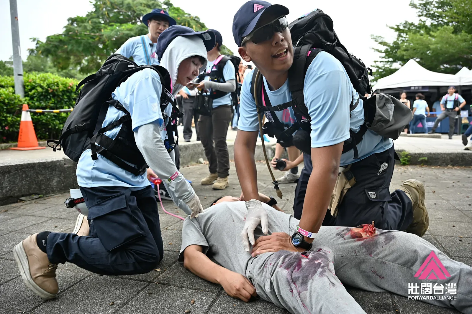 2023 年 9 月 17 日下午,壯闊台灣於台北市華山大草原舉辦《後盾行動日》綜合演練,超過 200 位夥伴參與,共同檢視與實踐民間災害應變能力。